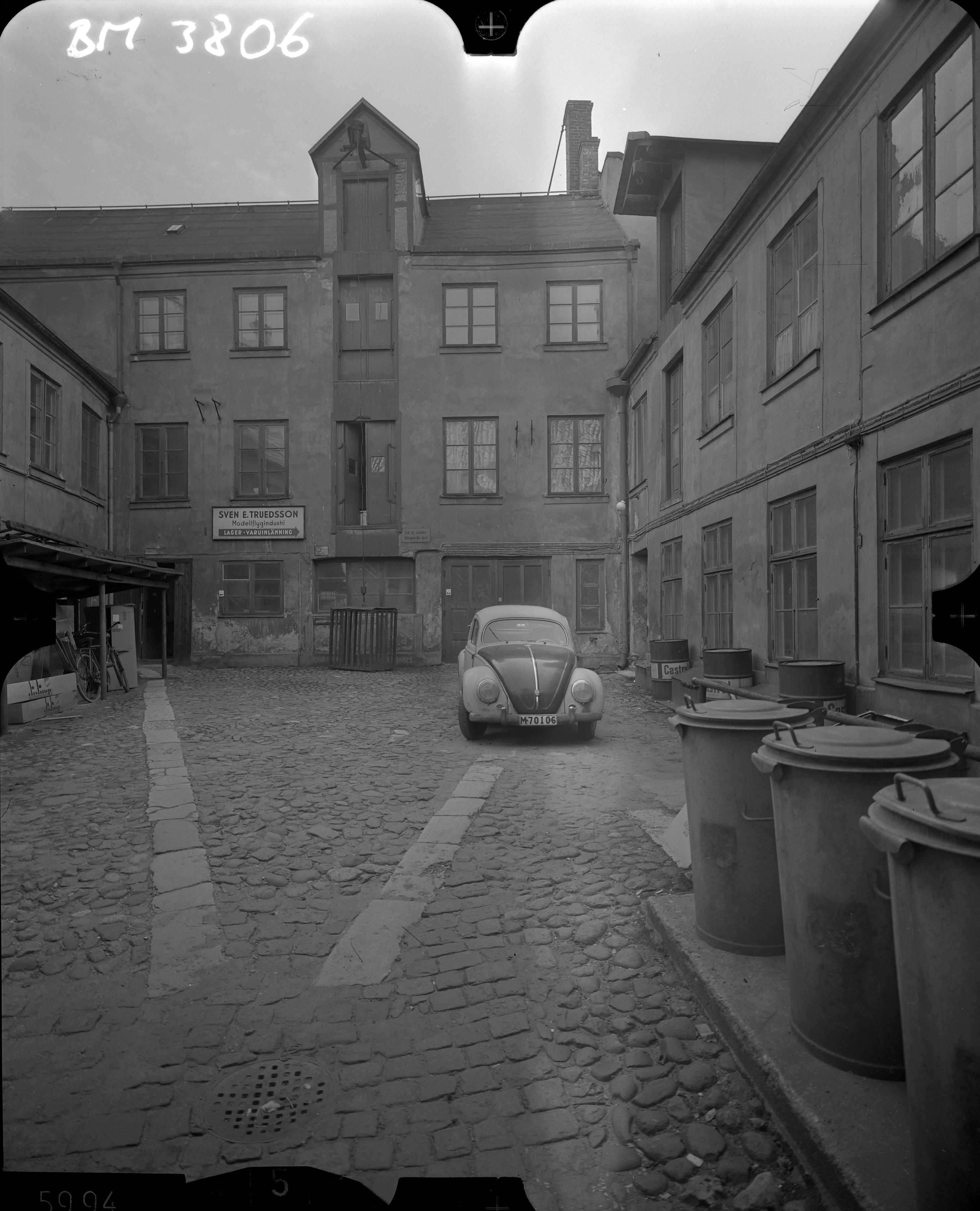 BM 003806 :: bil, bilar, kullersten, soptunna, kullerstenar, innergårdar, innergård, soptunnor
