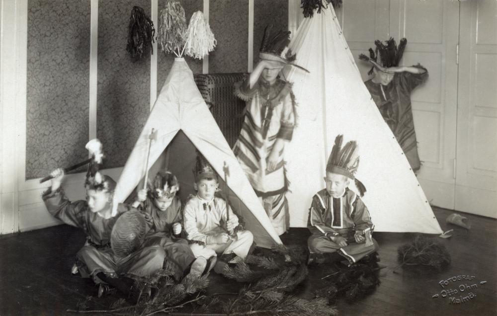 Barn som leker i tipis.