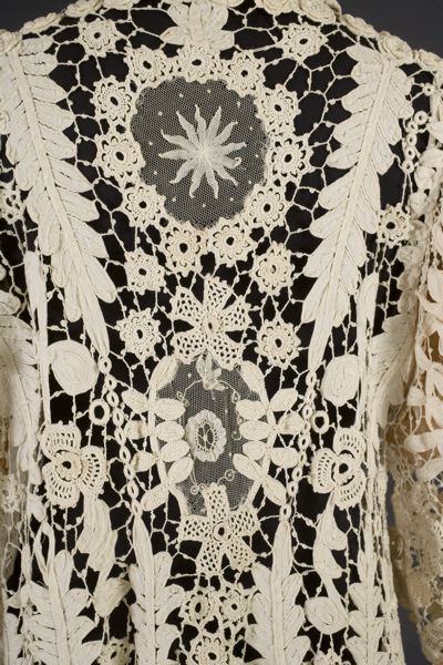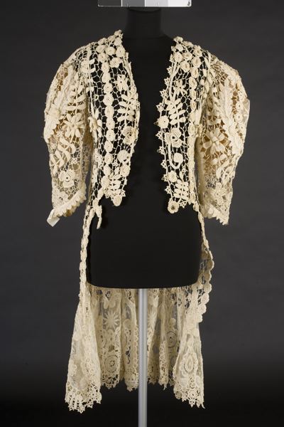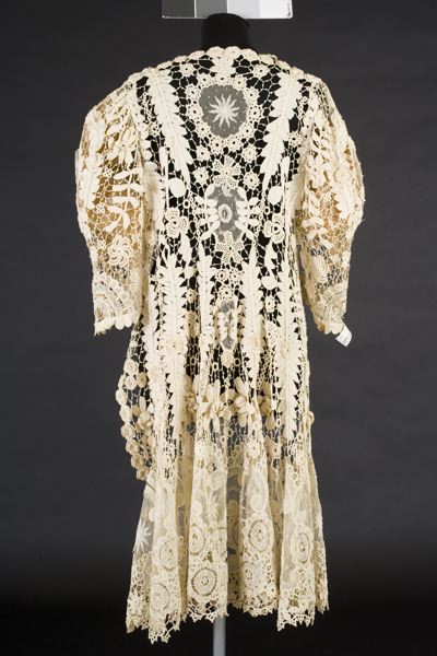 Överklädsel, kappa av spetssöm av vitt bomullsgarn med virkade motiv