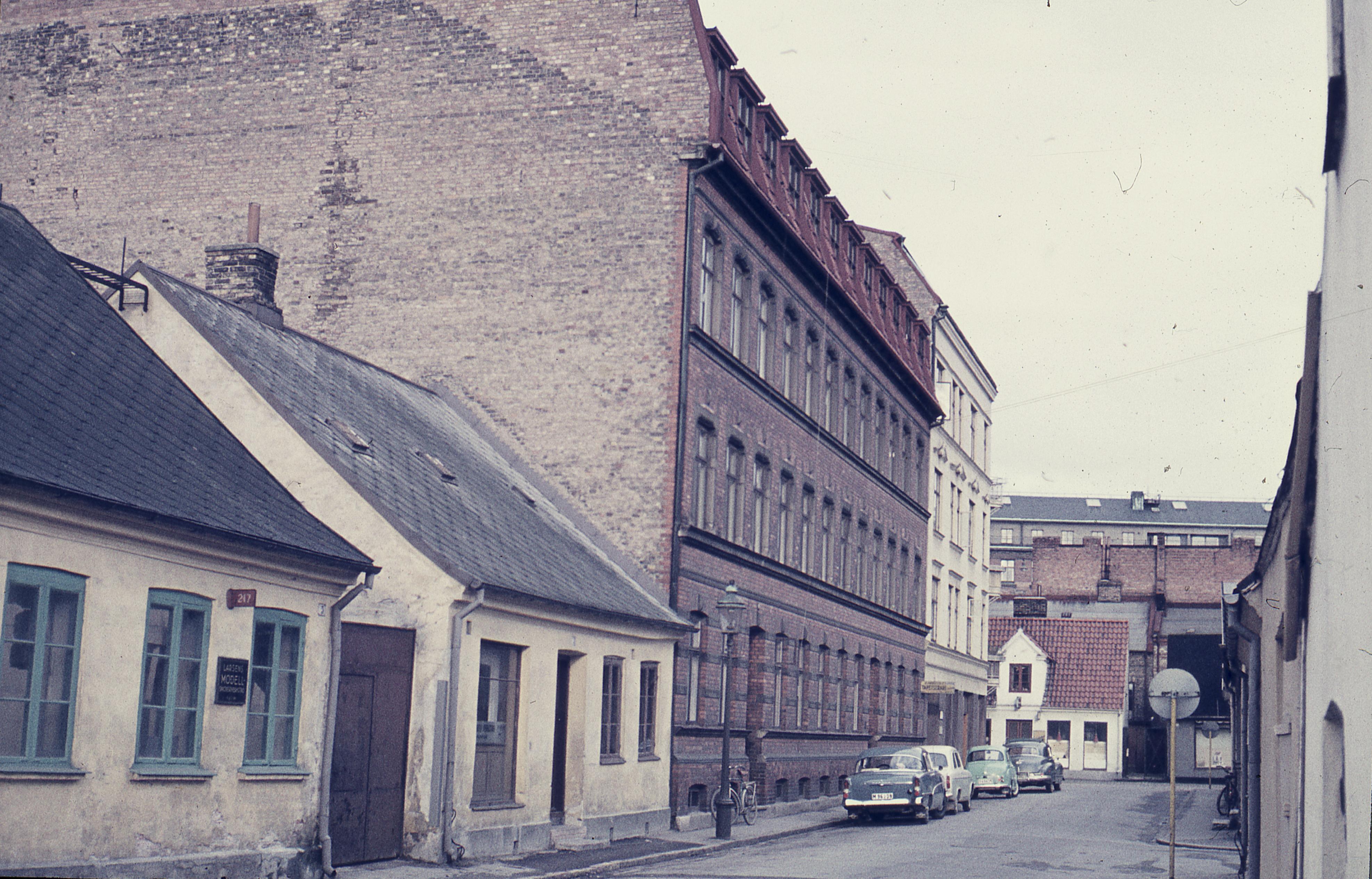 Riktning norrut mot Storgatan. Februari 1962 kommer gatan att gå igenom kvarteret nr. 8 i fonden och möta Norra Långgatan.