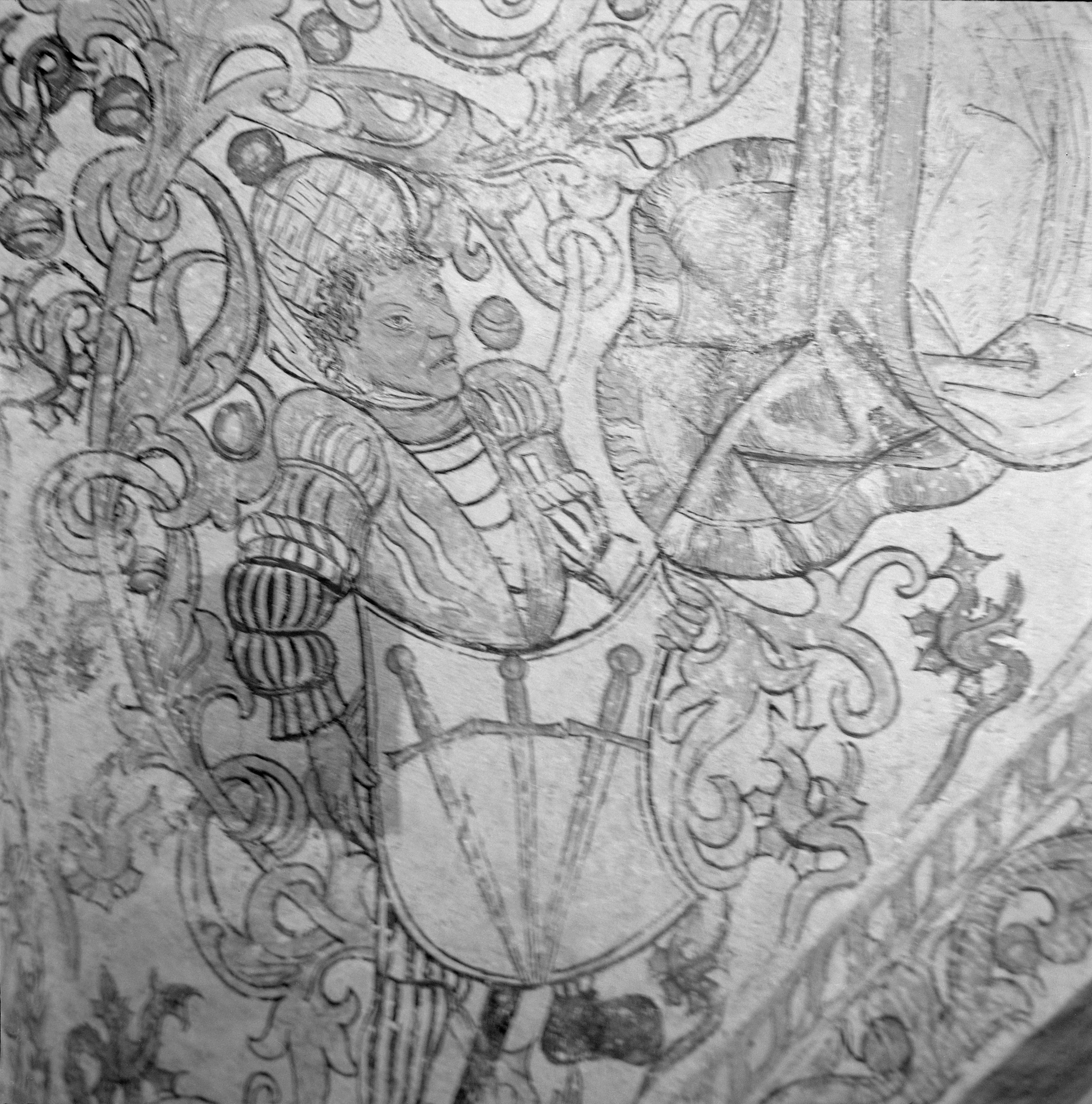 Väggmålning i Krämarkapellet i S:t Petri kyrka.