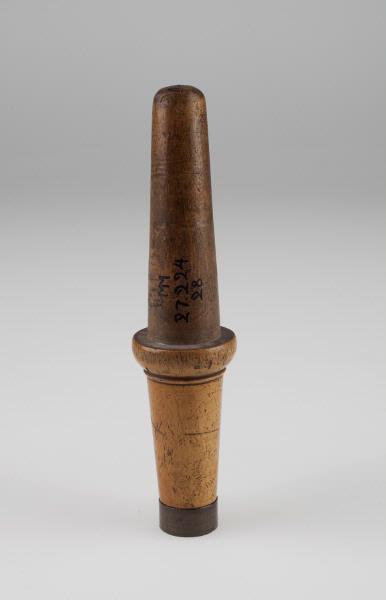 Svarvat träskaft med mässingsbeslag.