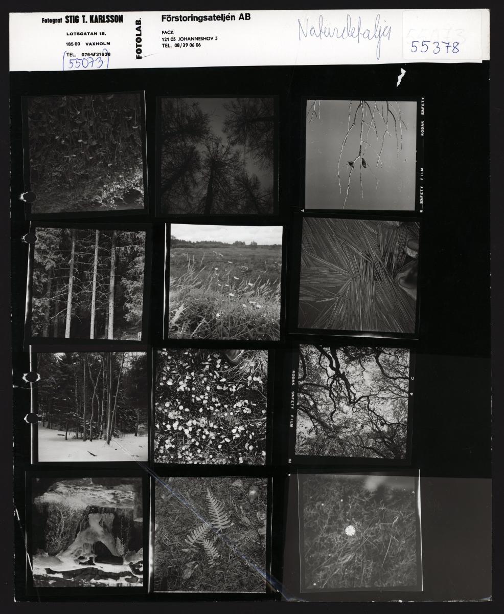 - Naturreservat: Isbildning på vattenfall, maskrosäng, stensöta, nedfallna björkblad på mossa, vägren, prästkrage, bok. starar, 1950-tal.
