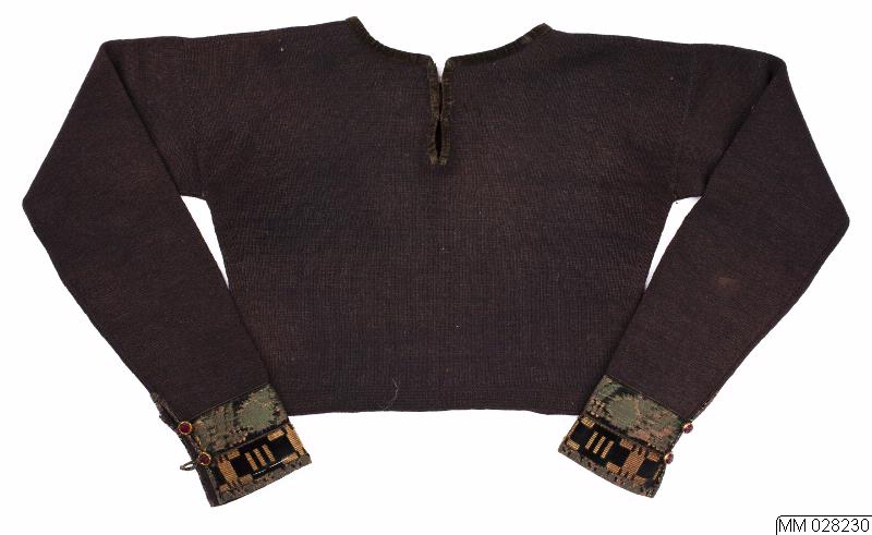 3. Spedetröja, blått ullgarn, manschettknappar.