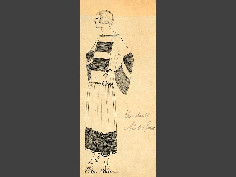Smart ensemble of dress and small cape in navy blue serge - trimmed