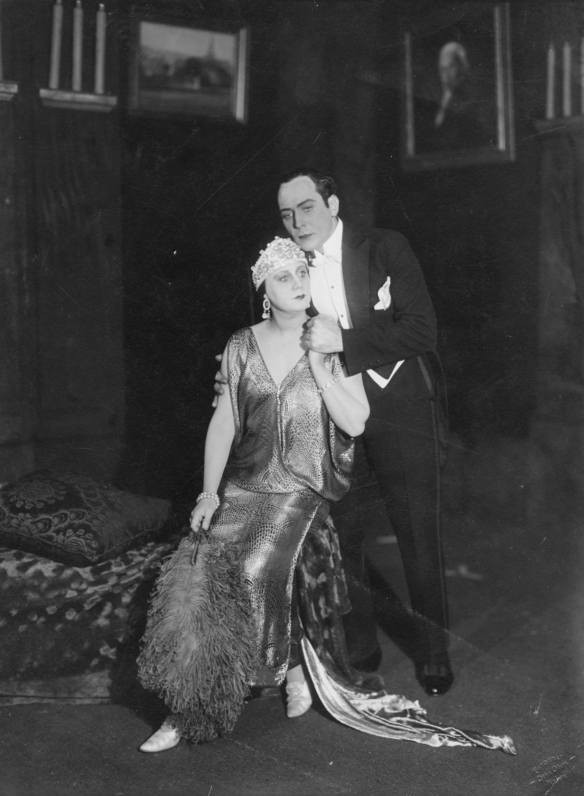 Lars Egge och Maja Cassel i andra akten av operetten "Csardasfurstinnan" på Hippodromteatern i Malmö. Föreställningen hade premiär den 11 februari 1925.