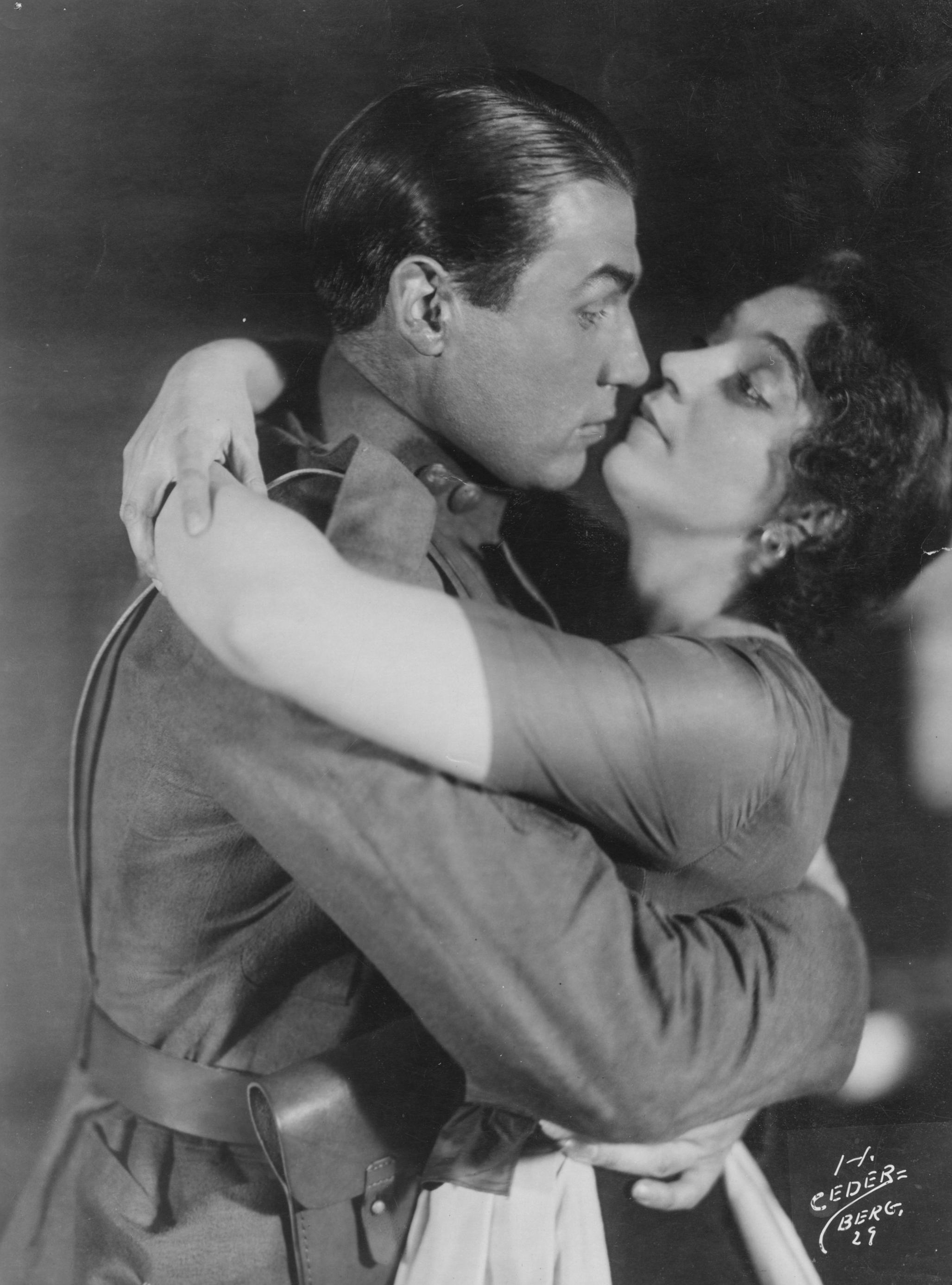 Fritiof Billquist och Lisskulla Jobs i krigspjäsen "På västfronten" på Hippodromteatern i Malmö. Föreställningen hade premiär den 19 oktober 1929.