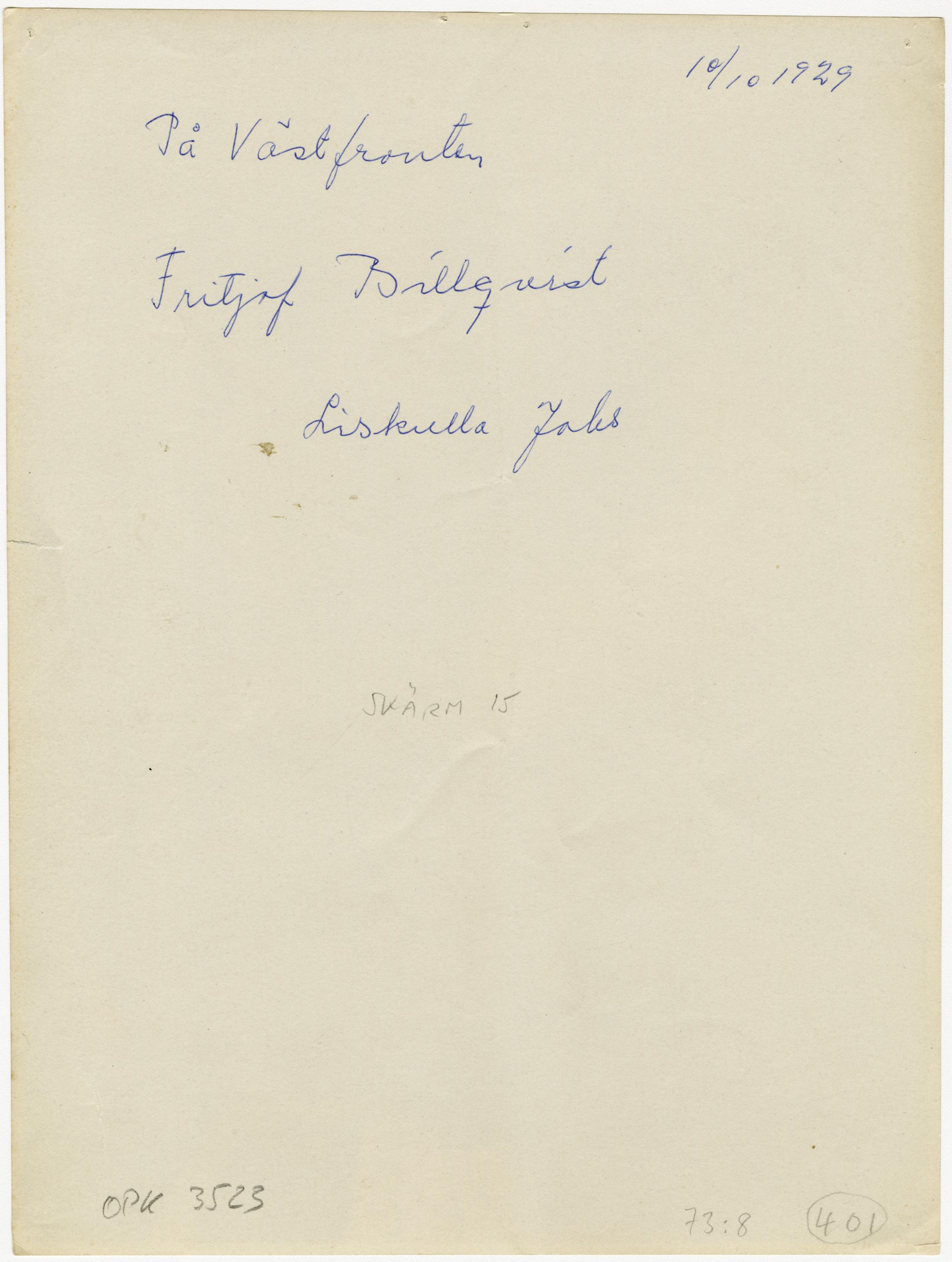 SKÄRM 15". Nere i högra hörnet står "73:8 401" (401 inom en cirkel).