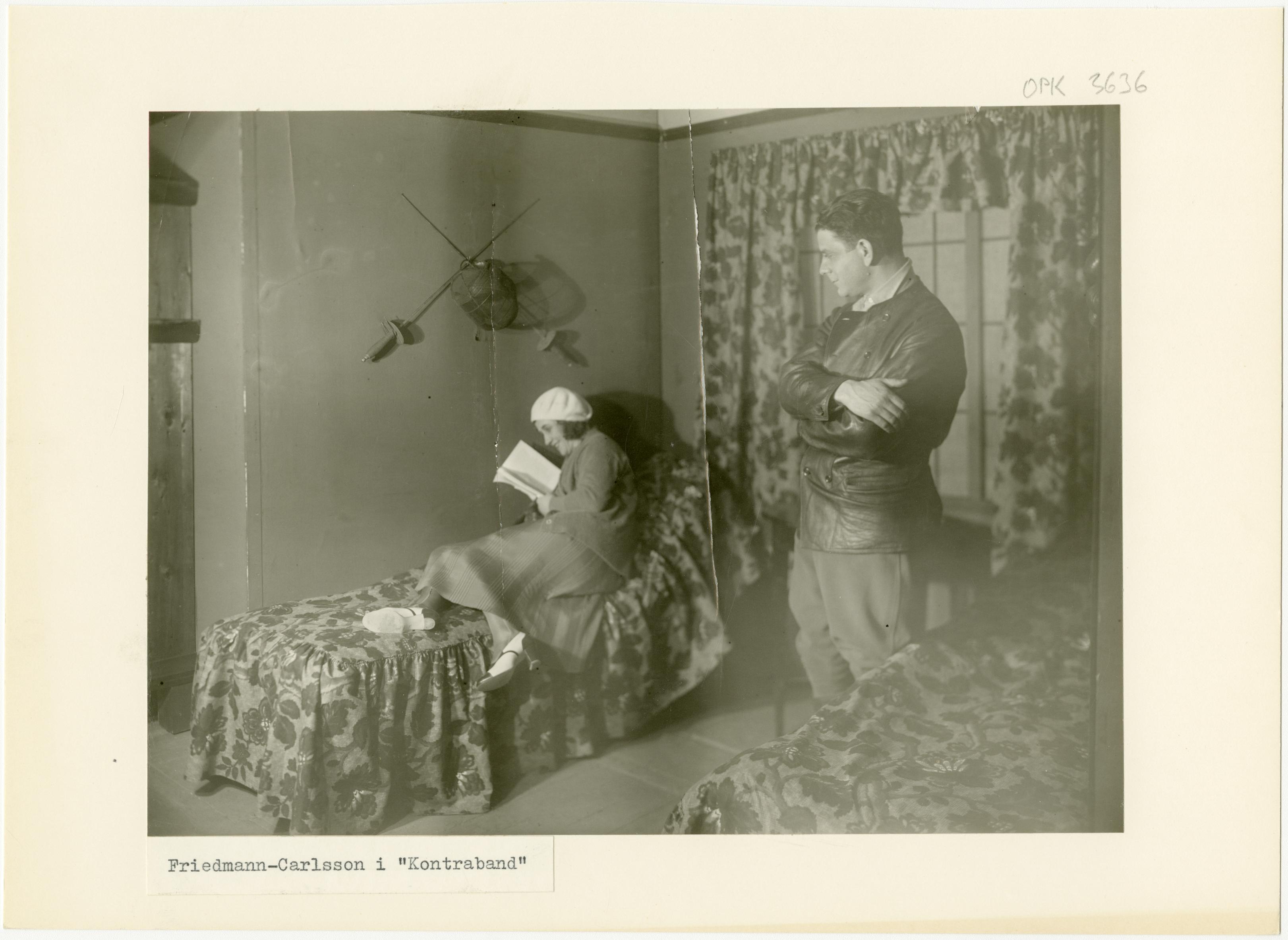 - Antingen heter en Friedmann-Carlsson eller så heter den ene Friedmann och den andre Carlsson i "Kontraband". Möjligen på Helsingborgs stadsteater. (Helsingborgs stadsteater gästspelade inte sällan på Malmö teater vid Gustav Adolfs torg). Kanske sent 1920-tal eller tidigt 1930-tal.