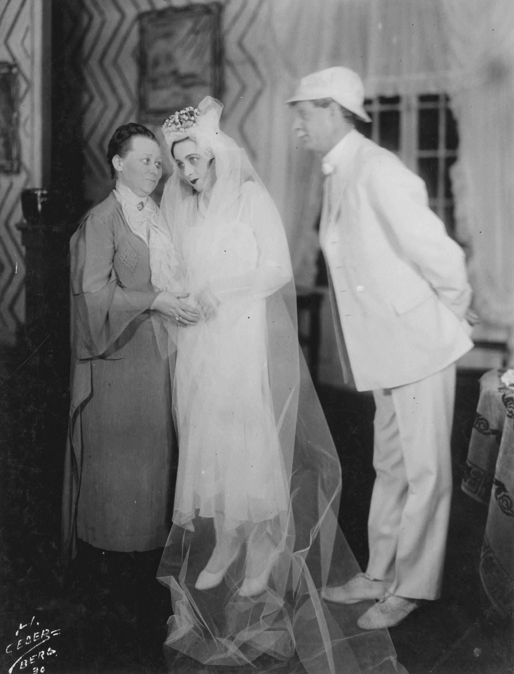 Jullan Kindahl + två oidentifierade skådespelare, sannolikt på Hippodromteatern i Malmö. 1930.