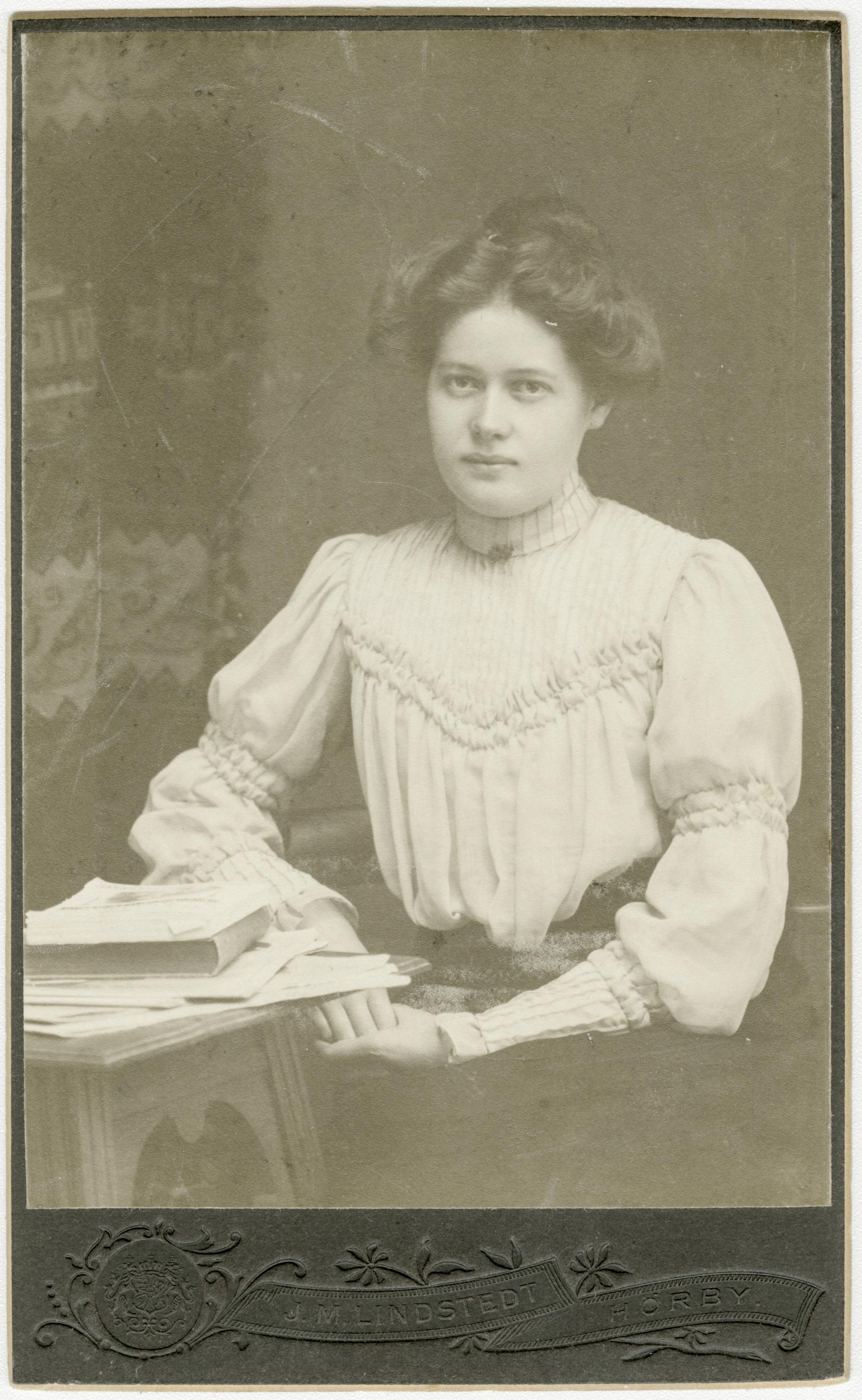 Kvinnoporträtt på visitkort.