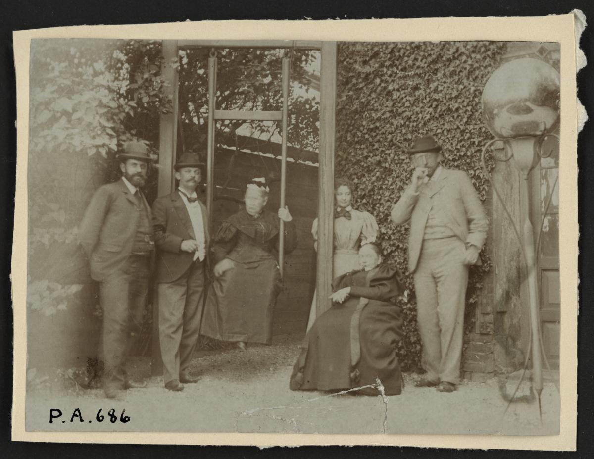 Visitkortsfotografi. Grupporträtt; grosshandlare Bager /kassör Quensel m. fl. i Bagerska Trädgården.