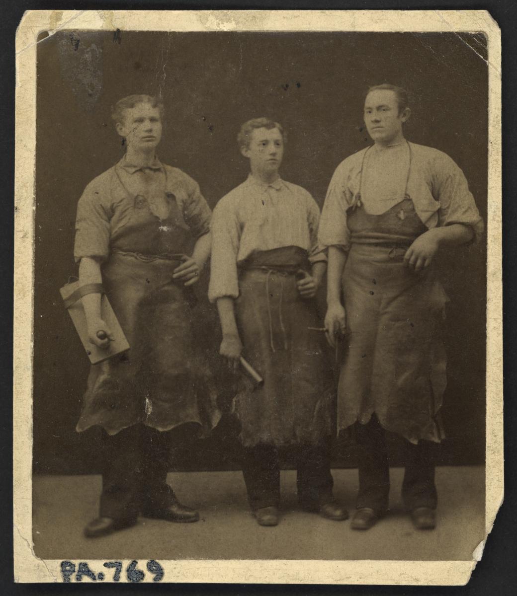 Visitkortsfotografi. Porträtt av tre okända garvare.