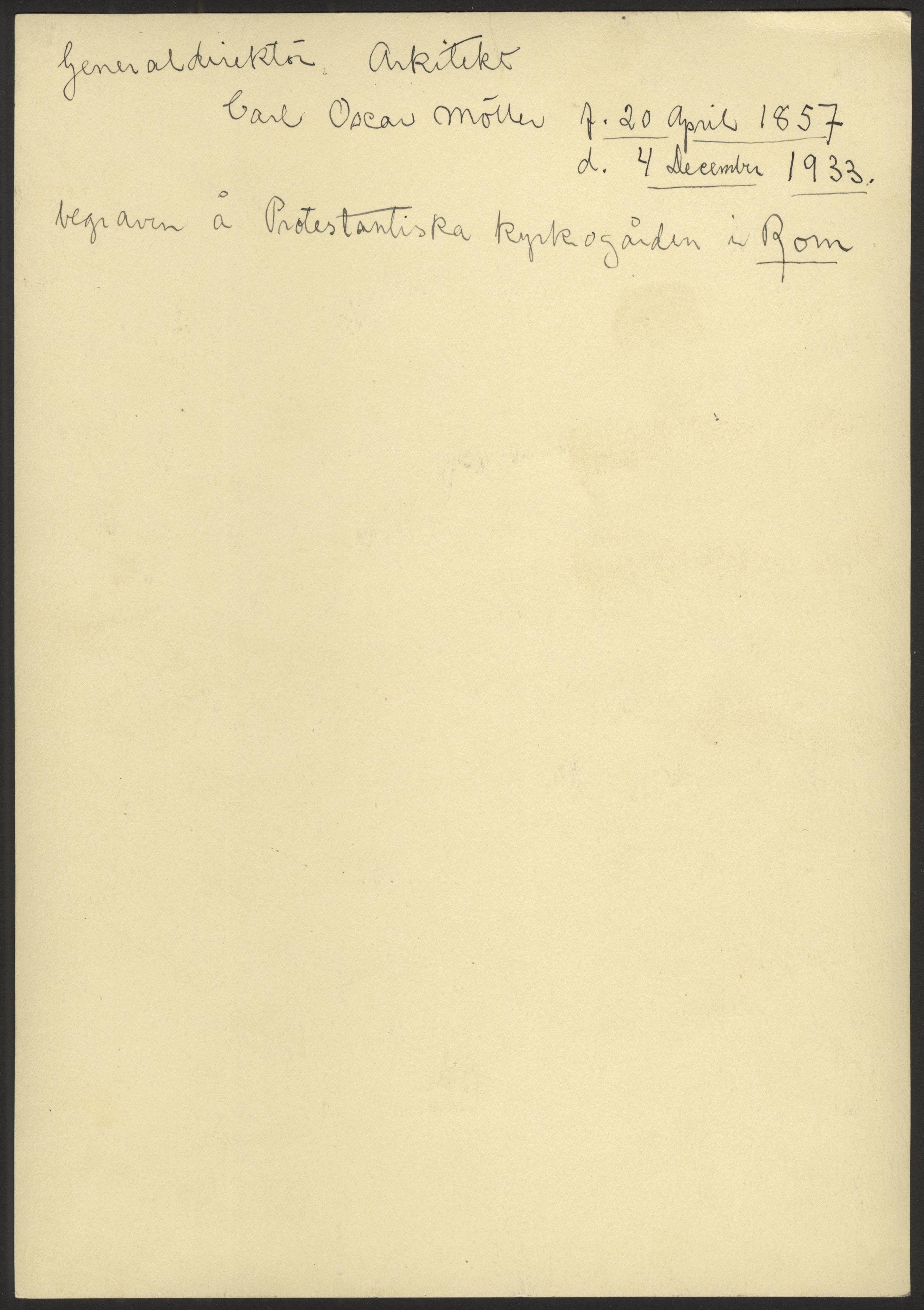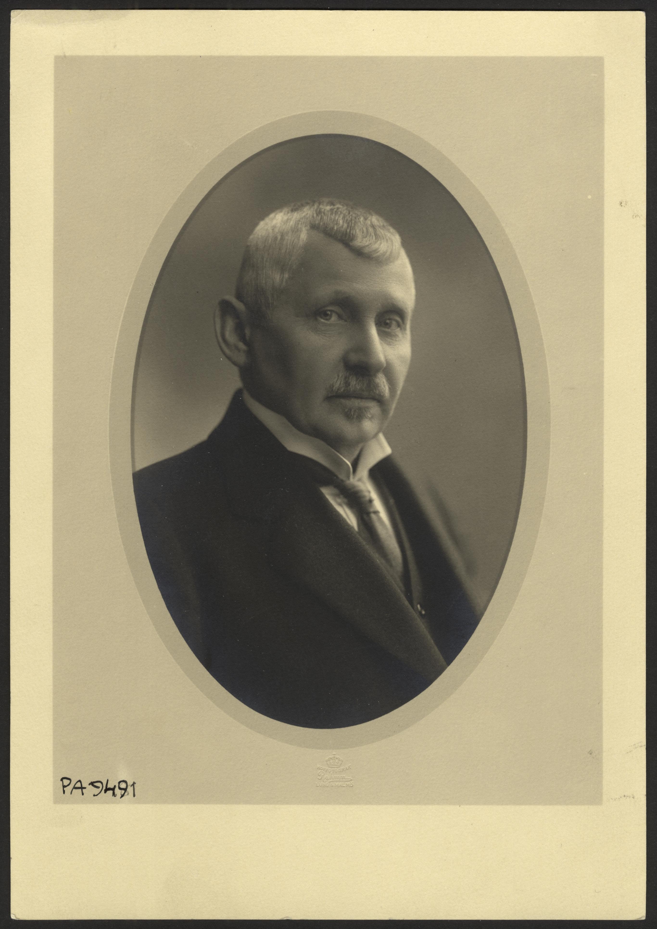 Visitkortsfotografi. Porträtt av Carl Oscar Möller, generaldirektör. Arkitekt, f. 20 april 1857-d. 4 december 1933. Begraven på Protestantiska kyrkogården i Rom.