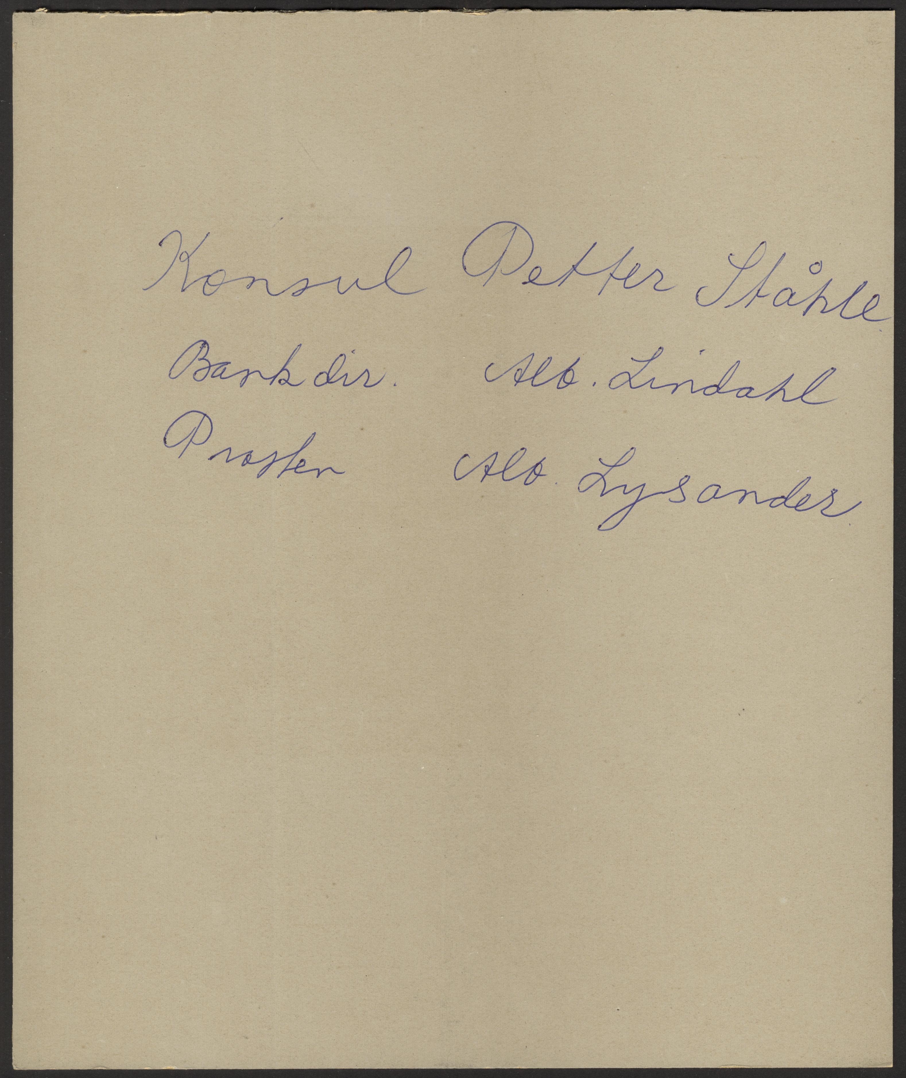 Konsul Petter Ståhle /bankdirektör Albert Lindahl /prosten Albert Lysander