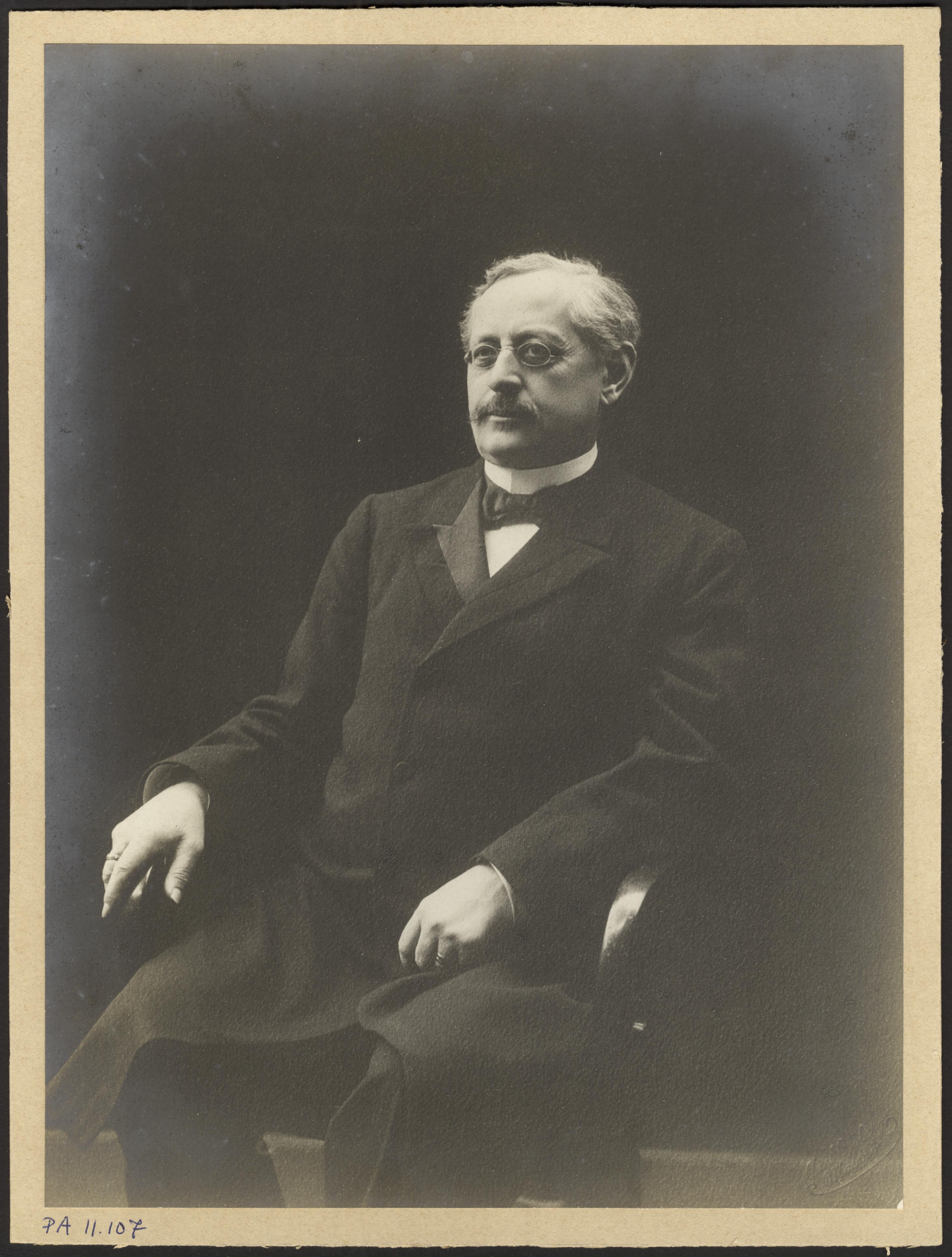 Visitkortsfotografi. Porträtt i helfigur av Edward Lindahl, lektor, bankdirektör och kommunalpolitiker.