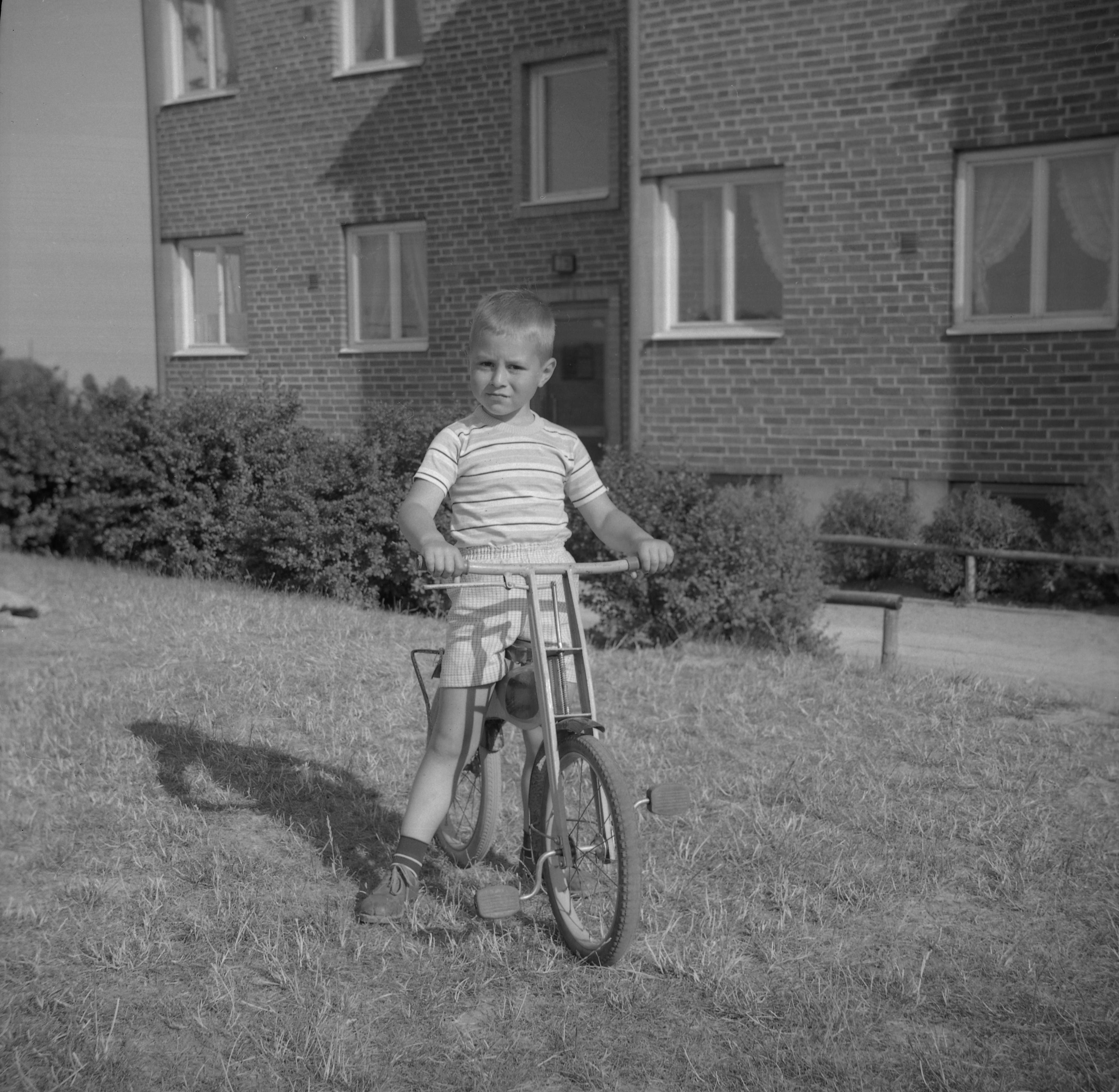 MM 063452:355 :: barn, pojke, pojkar, cykel, gräs, gräsmatta, gräsmattor, cyklar