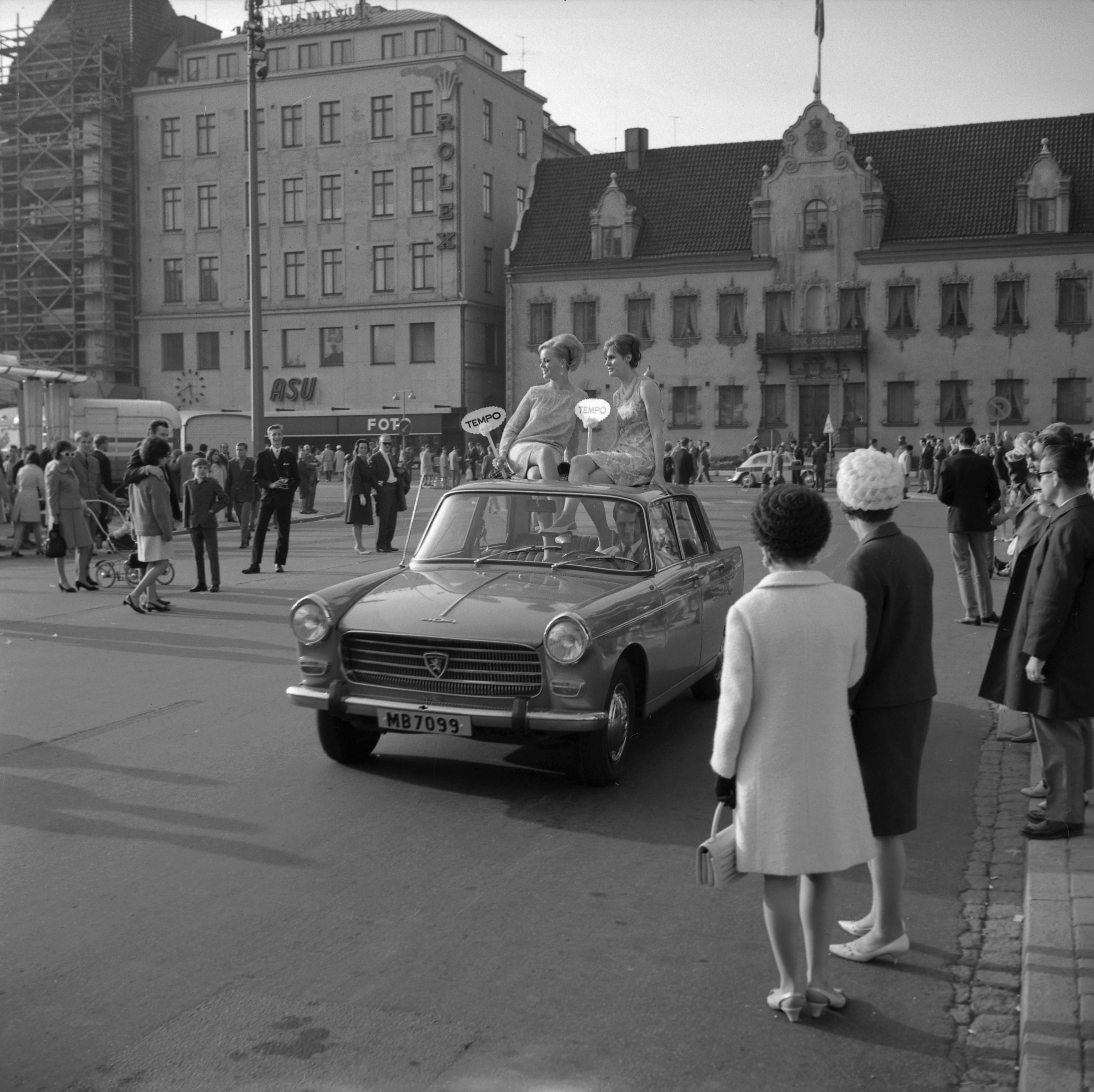 MM 063452:759 :: byggnader, bil, bilar, kvinna, man, byggnad, kvinnor, män