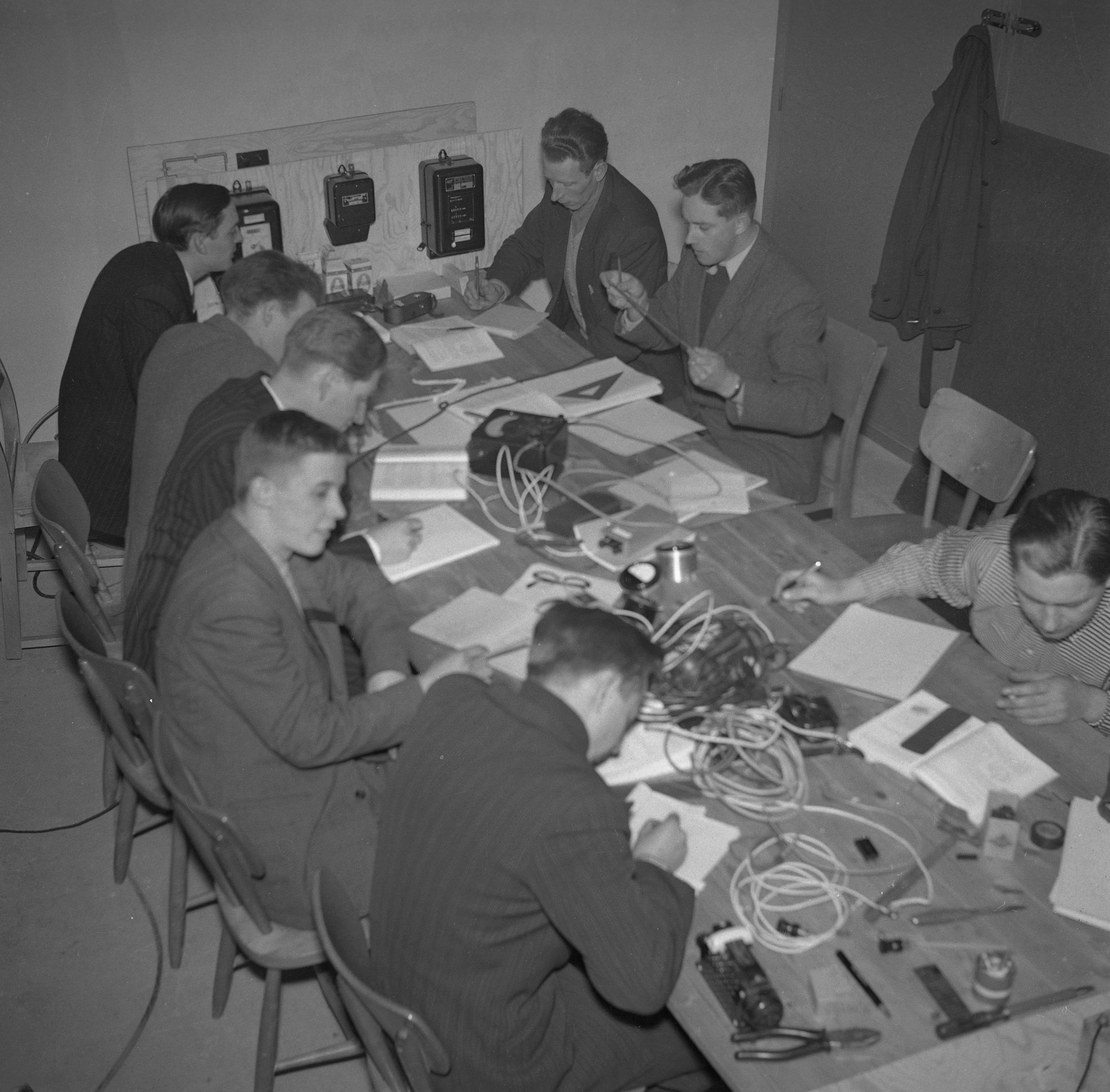 MM 063452:986 :: sladd, bord, man, sladdar, papper, stolar, män, stol