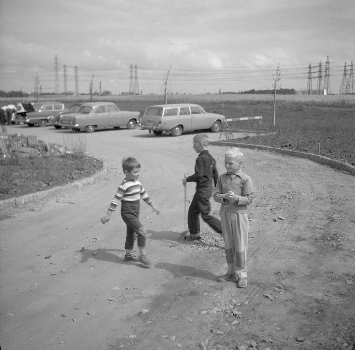 MM 063452:992 :: barn, bil, jord, bilar, pojke, pojkar, parkering, träd
