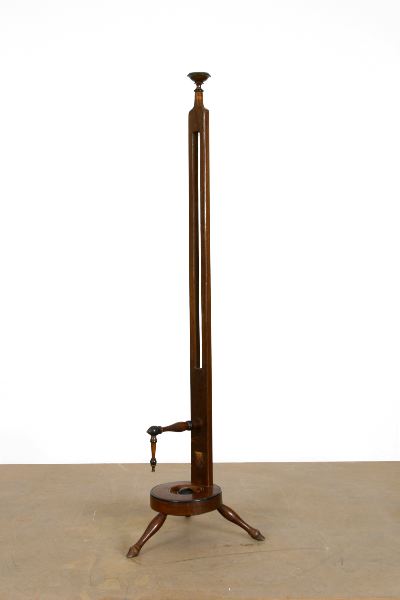 bestående av två trissor förenade av fyra runda stavar av gulbetsat trä.