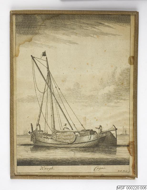 - Ett av sammanlagt 7 holländska koppartryck ur samma utgåva (förmodligen hämtade ur Nicolas Aubin: Dictionnaire de Marine, vars första utgåva trycktes i Amsterdam 1702 och därefter i flera andra utgåvor). Detta blad avbildar en "Kaagh", dvs. en holländsk kanalpråm.