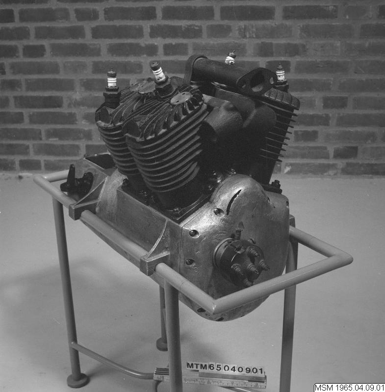 Båtmotor, 4-cyl, 4-takts V-motor med sidventiler. Fabrikat okänt.
