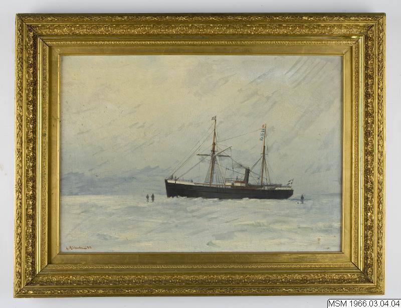 - Marinmålning, motiv: "Ångfartyg i isen". Oljemålning. Konstnär Ludwig Richarde 1888. Fartyget för unionsflagg och signalen HJNM och i skeppslistan 1885 finns EMLA eller EMBLA, byggd 1872 i Gefle, furu på järnspant, 60 hk ångmaskin. Kapten J.F. Wickman, hemmahamn Göteborg.