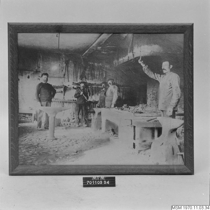 Fotoförstoring. Motiv: Kockums gamla smedja. Inramad.
