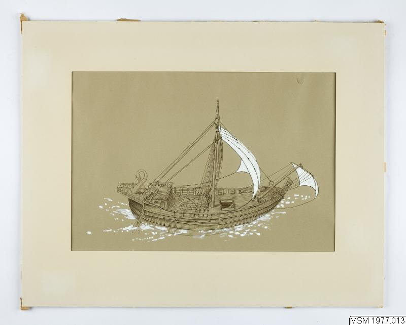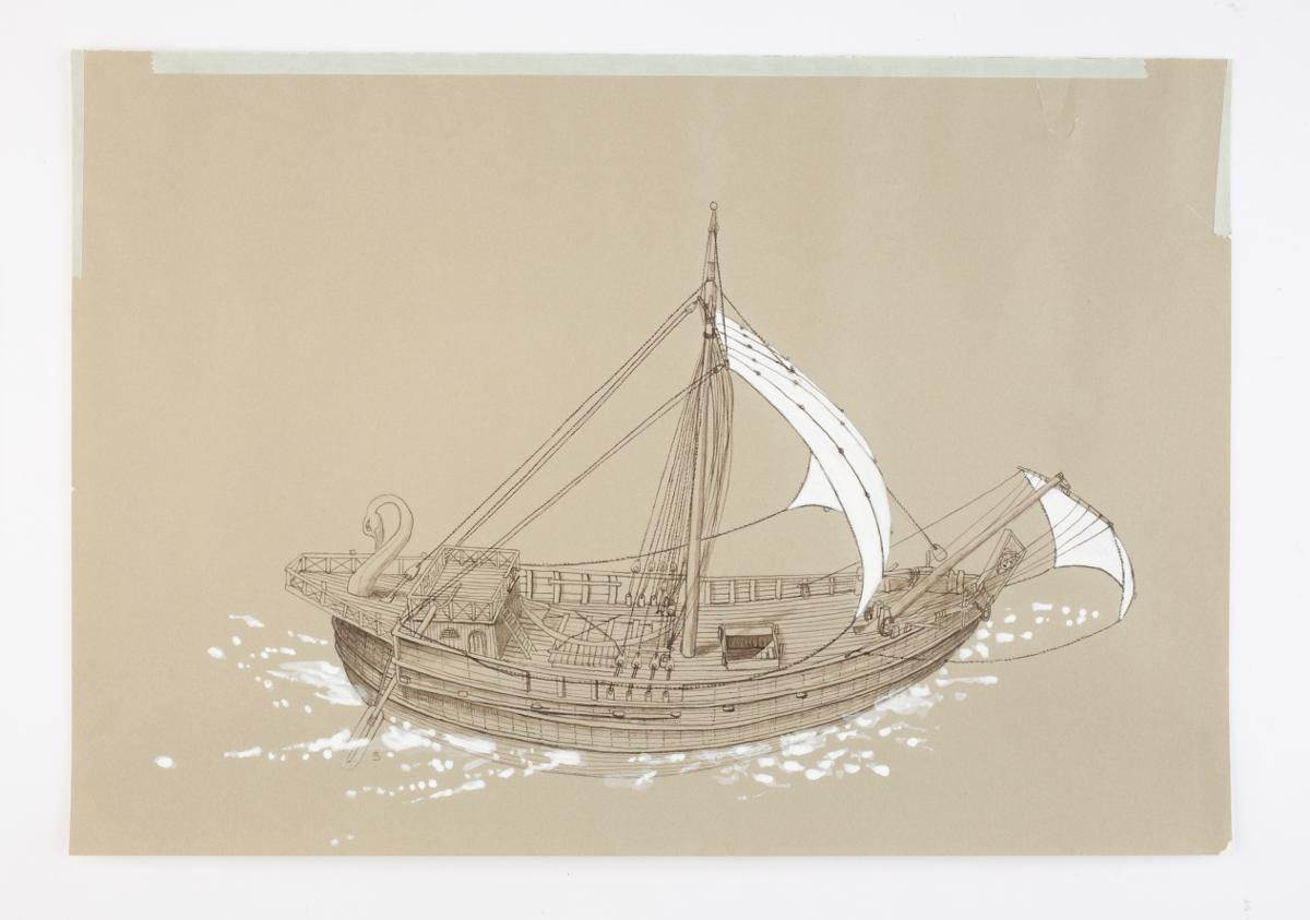 Akvarell, föreställande romerskt handelsfartyg.