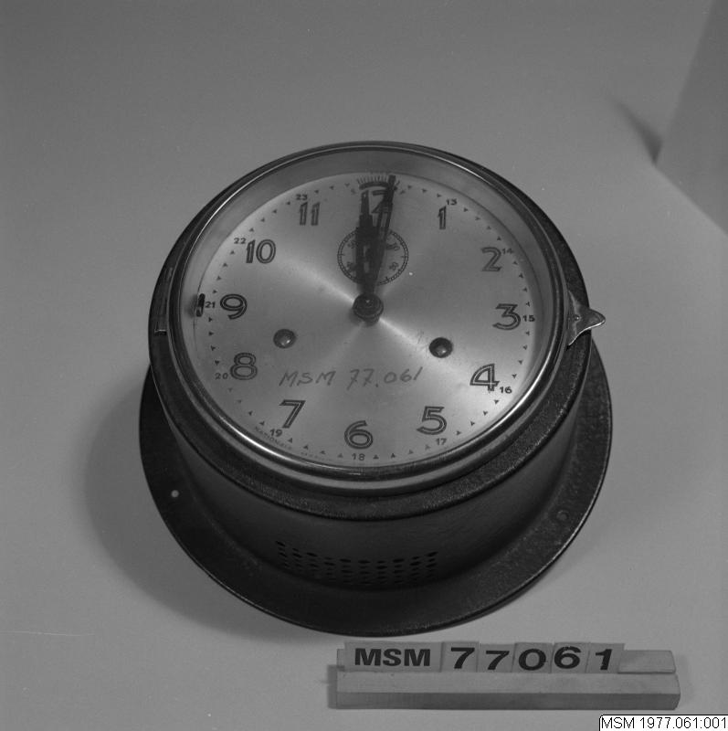 - Skeppsur: vanligtvis avsett för placering ombord å skott i navigationshytt eller salong. Fjäderverk. Slår glas. Tim-, minut- och sekundvisare. Svart cirkelrund plåthölje. Metallblank urtavla, diam. ca 150 mm. Tillverkare: Nationale Marineuhren Gesellschaft, Hamburg. 1930-talet. 1 st uppdragsnyckel. Uret har tillhört Sjökapten Ivar Nygren. Arkivalier från 1977: Emerydiplom (medalj från 1943), två fotografier från ångbåtsbefälhavare och sjökaptensklasserna vid Malmö Navigationsskola åren 1889 och 1890. Mått enligt Labud 1997= 225 mm diameter