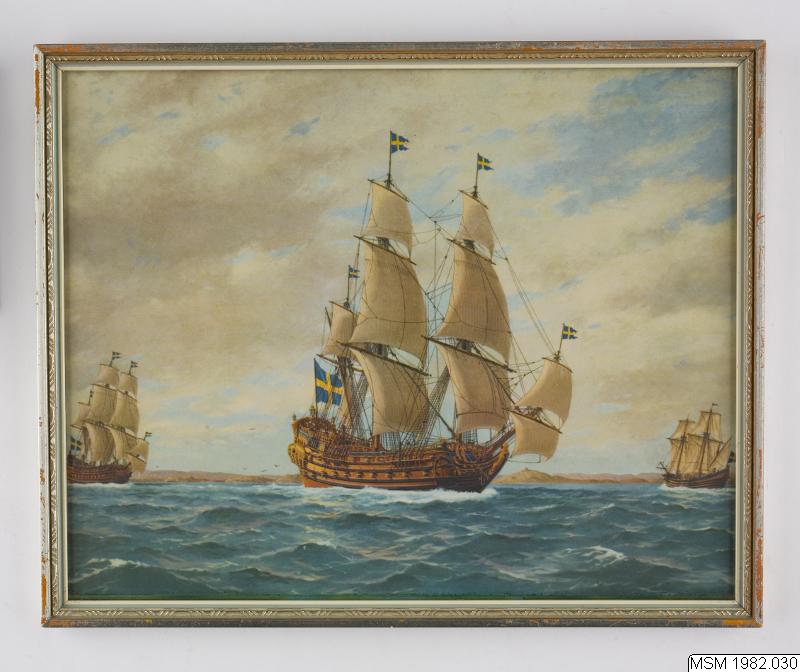 Påskrift i blyerts på bakstycket: AMIRALSKEPPET / "AMARANTHE" / LÄMNAR GÖTEBORG 1677.