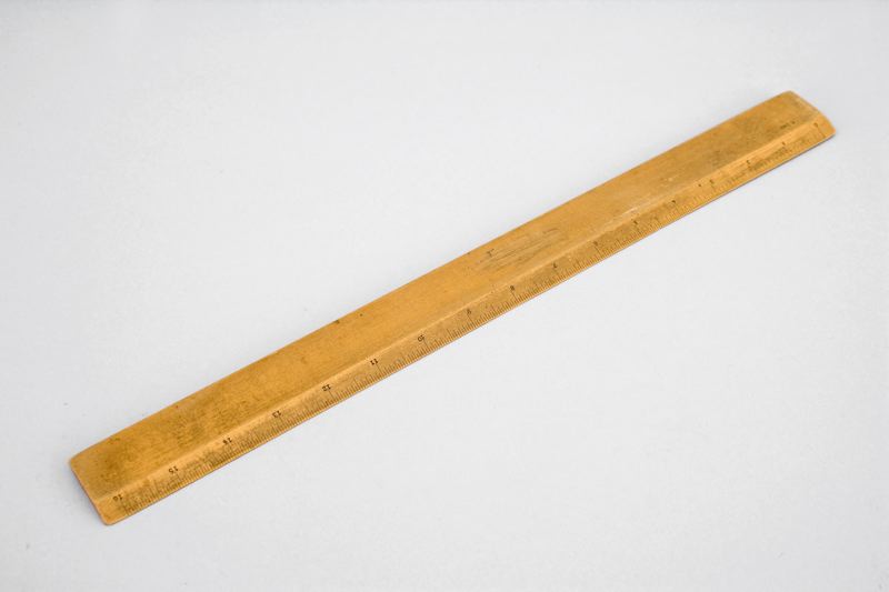 - Skallinjal av trä från Fartygskonstruktionsavdelningen. :9 Mått; 420x35 mm, måttenhet ?, skala 1:20, 1:40 slitna skalor ifyllda med rittusch. OBS! de är ej märkta individuellt, det vore synd om linjalerna. Detaljbeskrivning - se acc.boken.