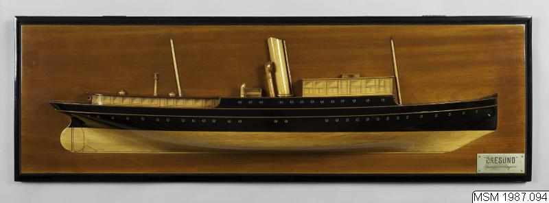 - Halvmodell, bgn 89 ss ÖRESUND. Modellen går ej att ta ner från väggen. Bra i lacken, utan skador. Namnplåt finns.Färja som gick emellan Malmö- Köpenhamn. Upphuggen i Ystad år 1957