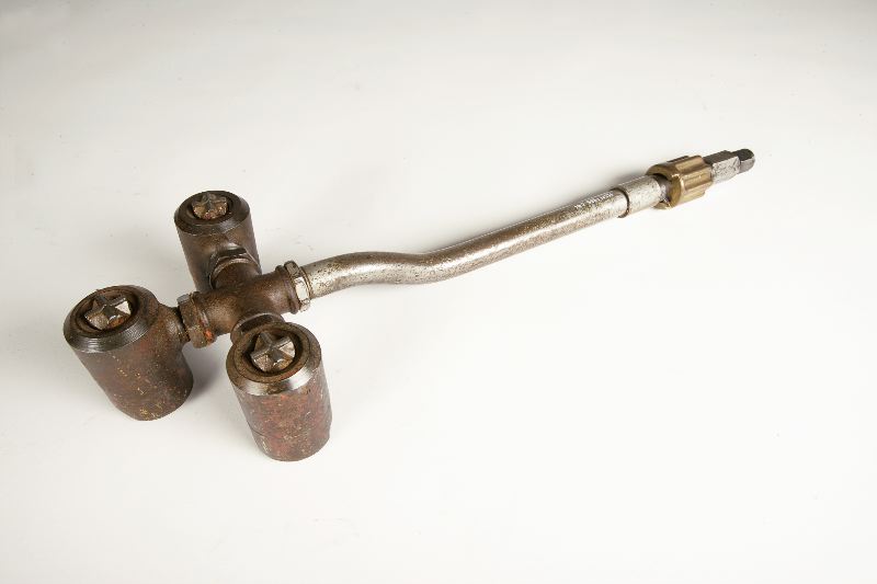 Tryckluftsdriven rosthammare med tre slaghuvuden.