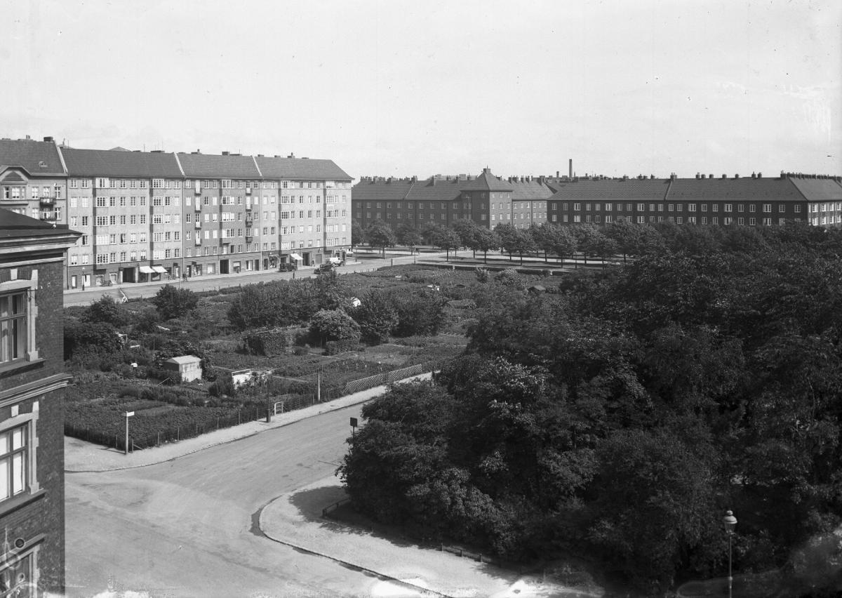 Koloniområde i kvarter Helge mellan Ehrensvärdsgatan och Döbelnsgatan. På platsen ligger idag Malmgården.I förgrunden löper Drottninggatan.