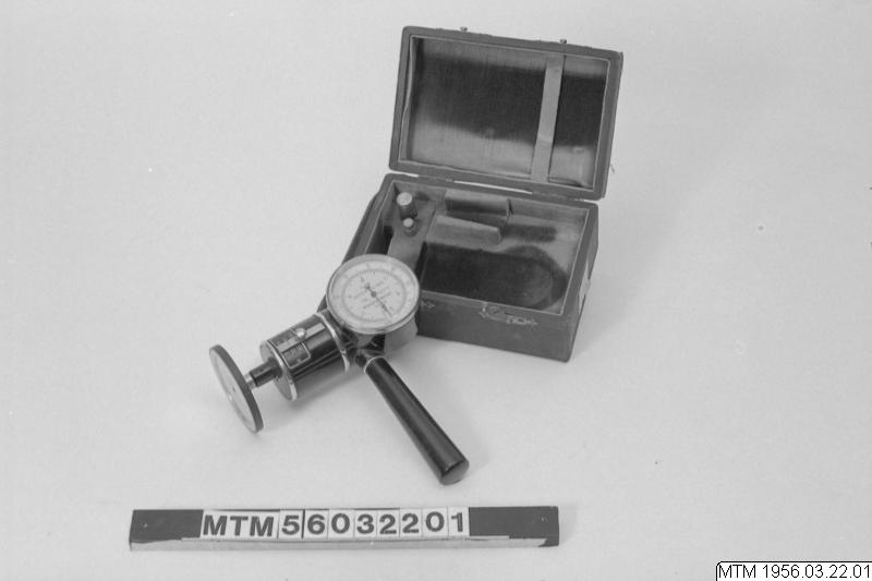 Takometer i förvaringslåda, handtakometer även för mätning av skärhastighet t.ex. vid svarvning. I gott skick. Från år 1920. Wilhelm Morell var svensk, bosatt i Leipzig.