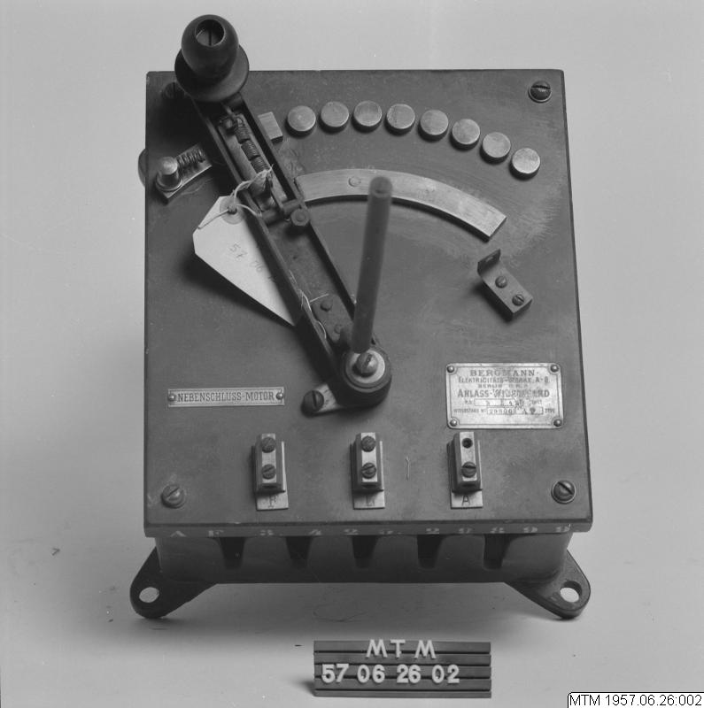 Pådragsmotstånd. Har tillhört likströmsmotorn till orgelbälgen (MTM 1957.06.26.001). Anlass- Wiederstand PS 3.