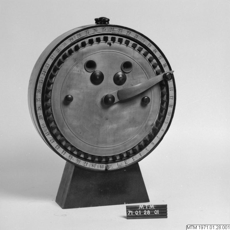 påklistrad list av vitt papper med siffror tryckta i rött och svart. Den