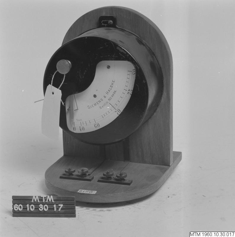 Voltmeter monterad på träplatta. Graderad 0-40-80 Volt.