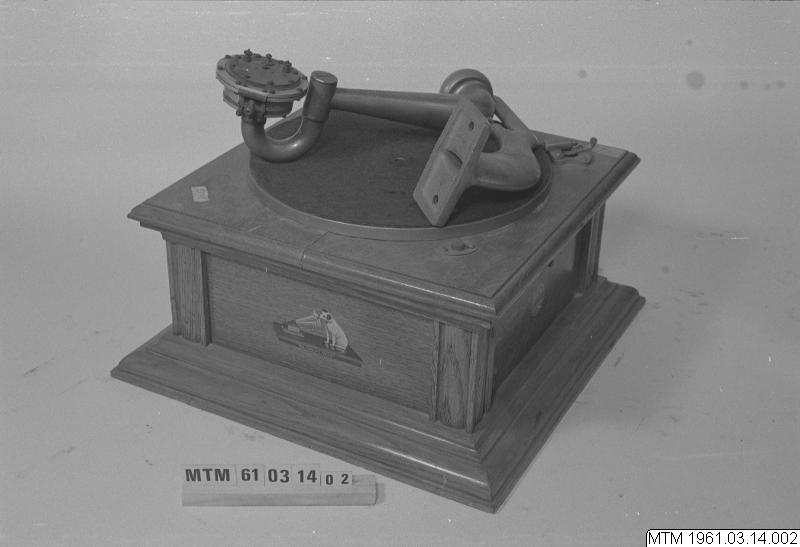 Grammofon. Grön filt på skivtallriken. Trasig.
