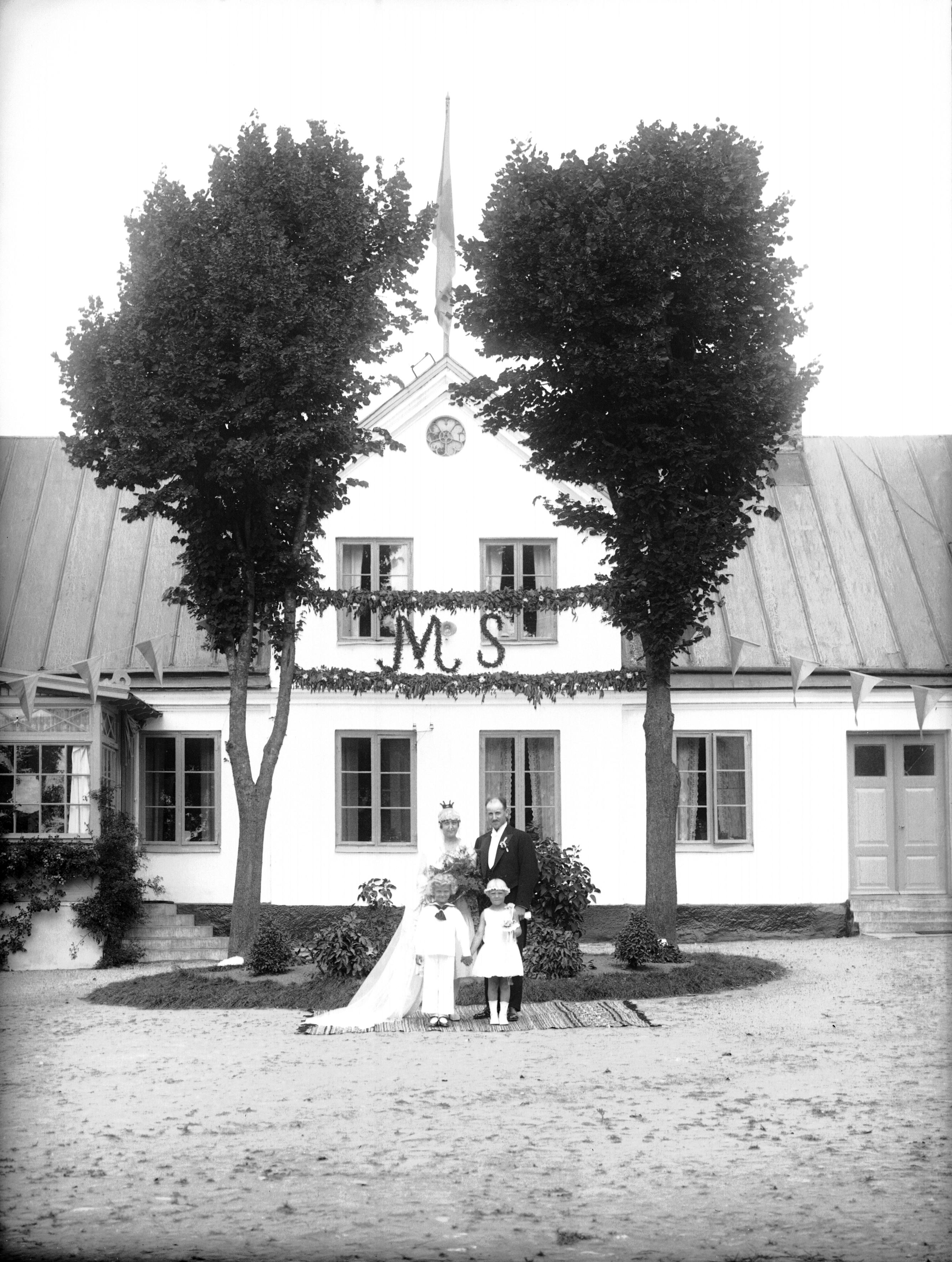 Brudpar framför ett hus. Sigurd Jönsson, Hagavik Kvarnby.