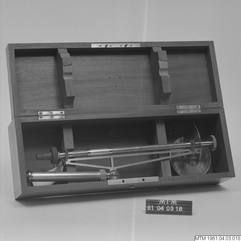 Optisk apparat, i en trälåda.