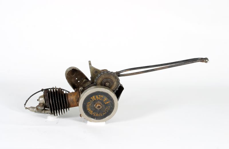 - Påhängsmotor. 1-cylindrig luftkyld. En föregångare till mopedmotorn. Svänghjulet märkt: Velocipedmotorn Furir. 1 st Boschtändstift. Gasreglage med wire. 1 st förgasare. Donatorns fader G.C. Faxe, körde under 1:sta världskriget med cykel, med denna motorn verkande med kedjedrift på framaxeln. Bränsletank (längd: 360 mm) förvaras i mtmk 63b.