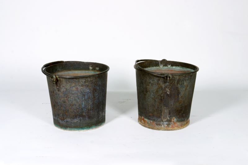 Två likadana hinkar av koppar. Rymd ca. 15 liter vardera.