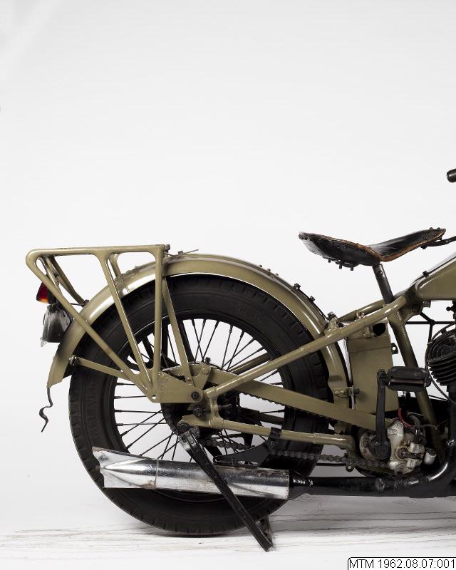 Motornummer: 31DL2860. Reg nr: M16909. Gåva genom Firma Bil & Traktor i Hörby. Motornummer 31DL2860 antyder att cykeln är något äldre än vad den registrerats som. På 1933 års modell var tanken dekorerad med ett Art Deco inspirerat fågelmotiv. Vår motorcykel är tyvärr omålad och alla logotyper och randningar försvunna.