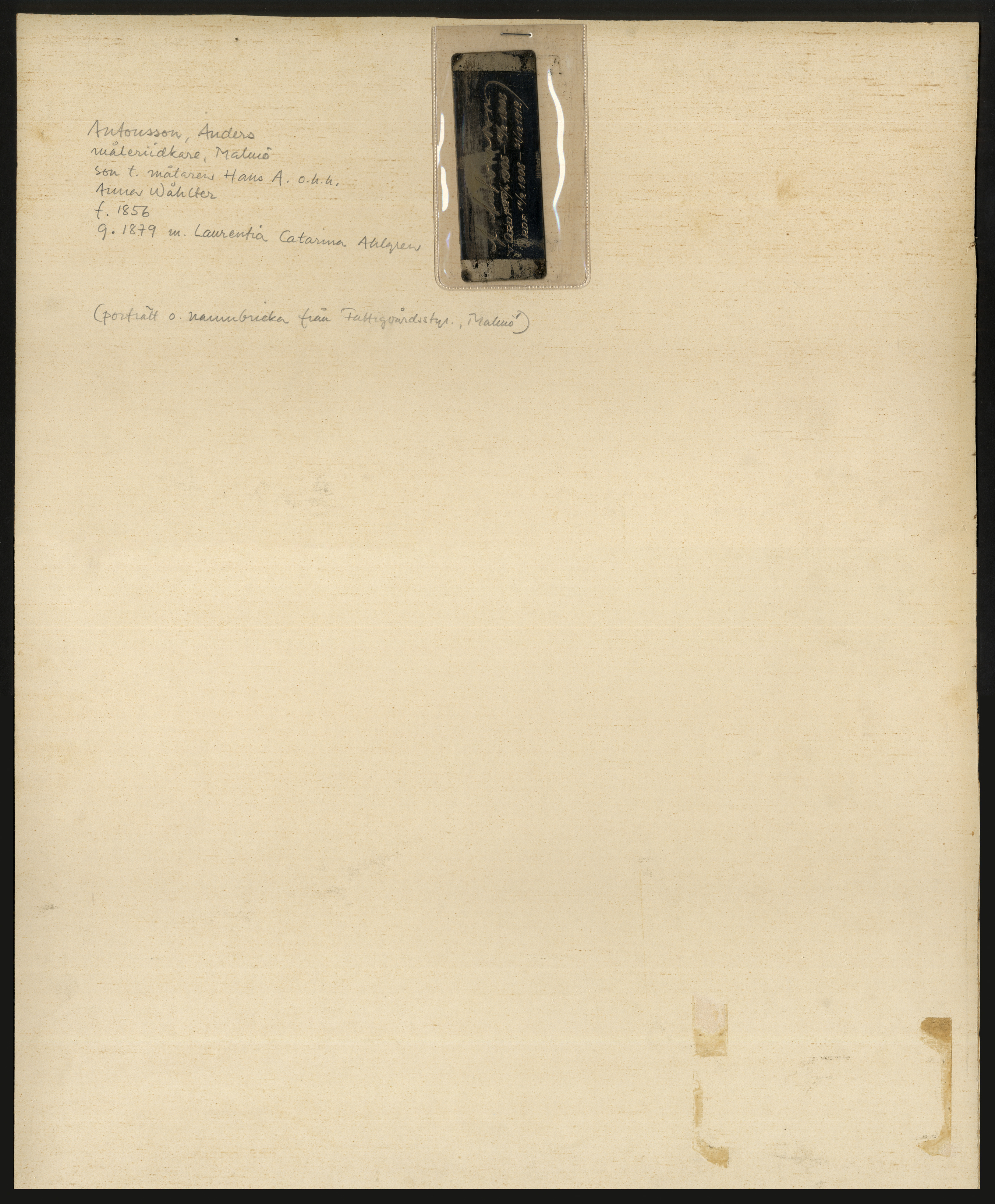 Porträtt i halvfigur av målarmästare Anders Antonsson. Son till målaren Hans Antonsson (1830-1909) och Anna Wollter (1825-1912).