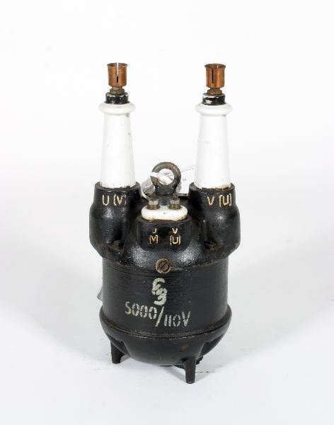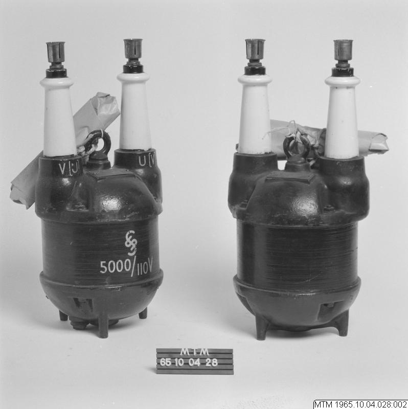 Transformator, 25/60 per. "Spannungswandler". Belastning 3VA, prim. 5000 volt, sek. 110 volt.