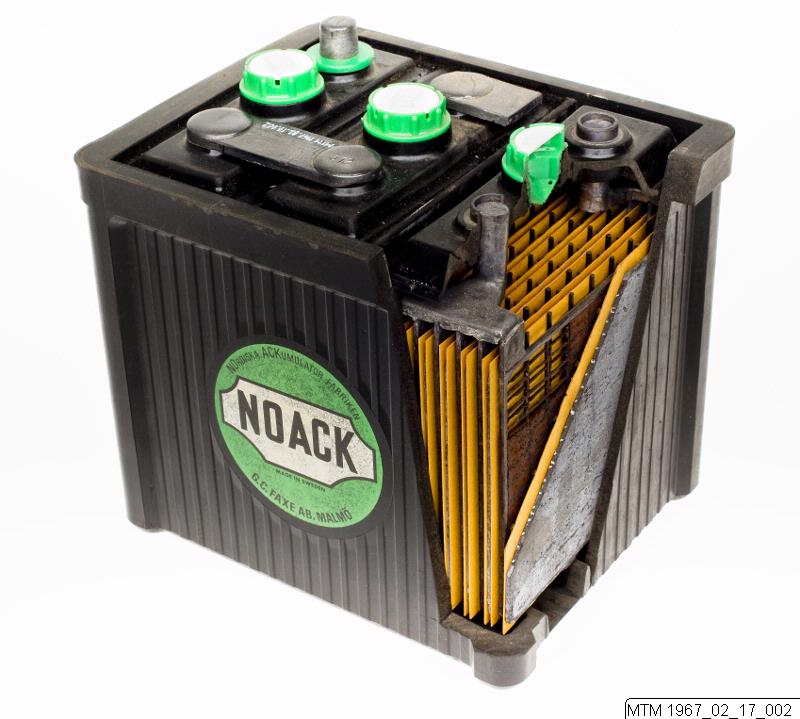 Ackumulatorbatteri, bly, genomskuren för demonstration.