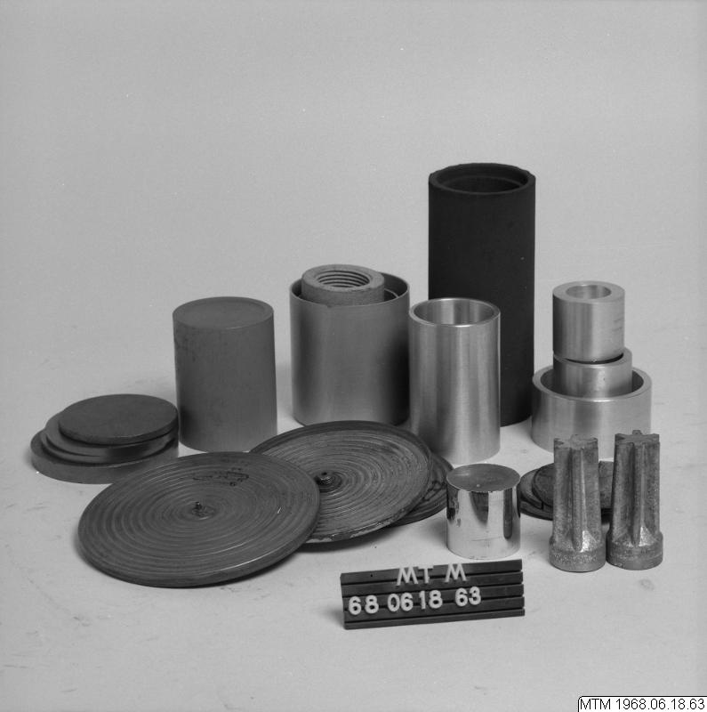 - Laboratorieutrustning bestående av; 1 st. våtelementkol, 3 st. metallbägare, 4 st. aluminiumbägare, 1 st. stenbägare, 1 st. stenfilter, 2 st. provgjutningar av blandad metall, 4 st. grafikbrickor, 2 st. blybrickor, 4 st. mässingsmembran.